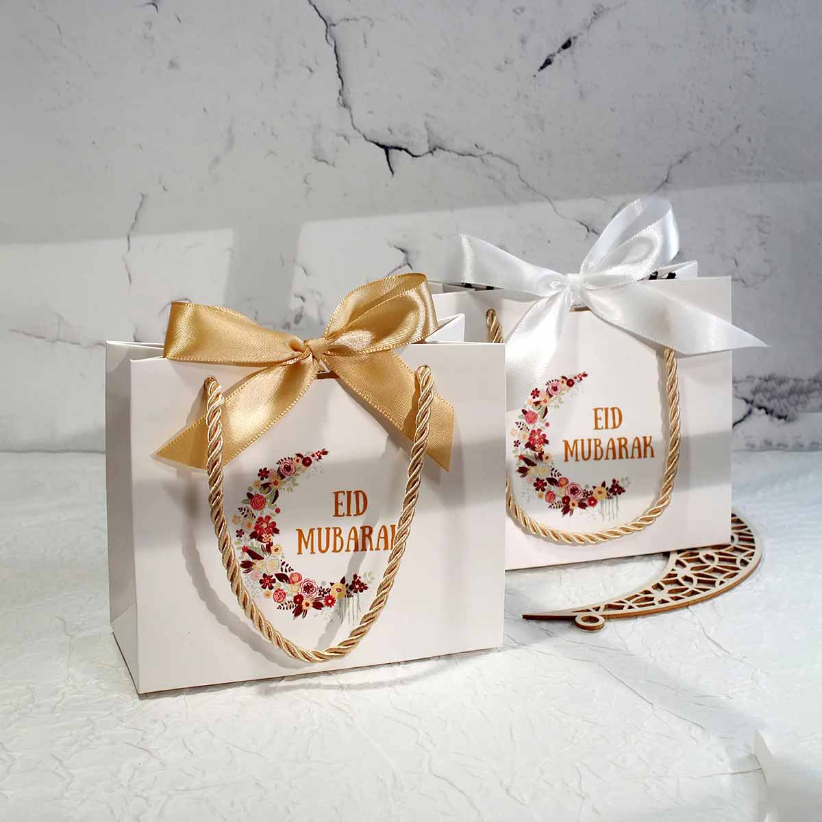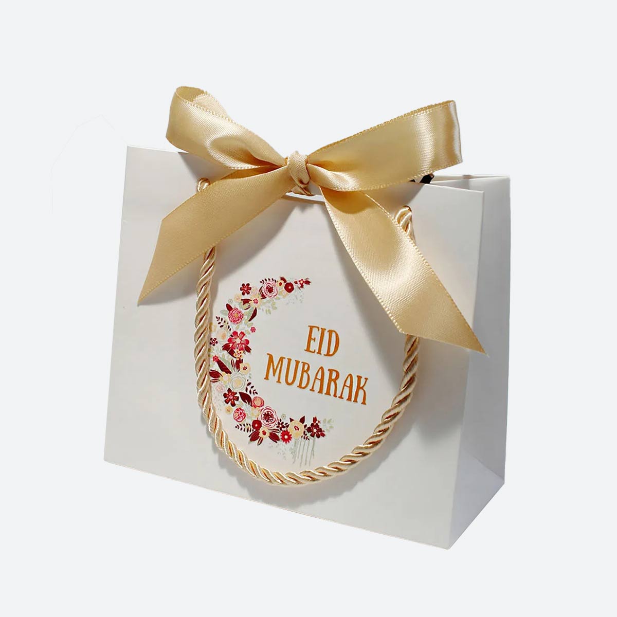 L’un des points forts de la collection Arjazia est la possibilité de personnaliser l’esthétique de votre boîte cadeau Eïd Mubarak fleur grâce au choix du ruban de satin supérieur. La version avec le noeud couleur or est l’incarnation même du faste oriental, la brillance du ruban répondant parfaitement à la dorure de l’inscription « Eid Mubarak ». C’est le choix idéal pour une soirée de fête sous les lumières des lanternes, où chaque éclat de satin participe à l’ambiance chaleureuse et prestigieuse de votre intérieur. Pour ceux qui préfèrent une élégance plus discrète et vaporeuse, la version avec le noeud couleur blanc offre un contraste magnifique avec les fleurs bordeaux et ocre du motif central. Ce ruban blanc apporte une touche de fraîcheur et de modernité, évoquant la clarté du matin de l’Eïd et la pureté des intentions. La cordelette de transport reste dorée sur les deux modèles, assurant une continuité luxueuse quel que soit le ruban choisi. Cette modularité vous permet même de mixer les lots de 5 ou 10 pièces pour créer une table dynamique, jouant sur les deux coloris de rubans pour différencier les cadeaux destinés aux hommes, aux femmes ou aux enfants.