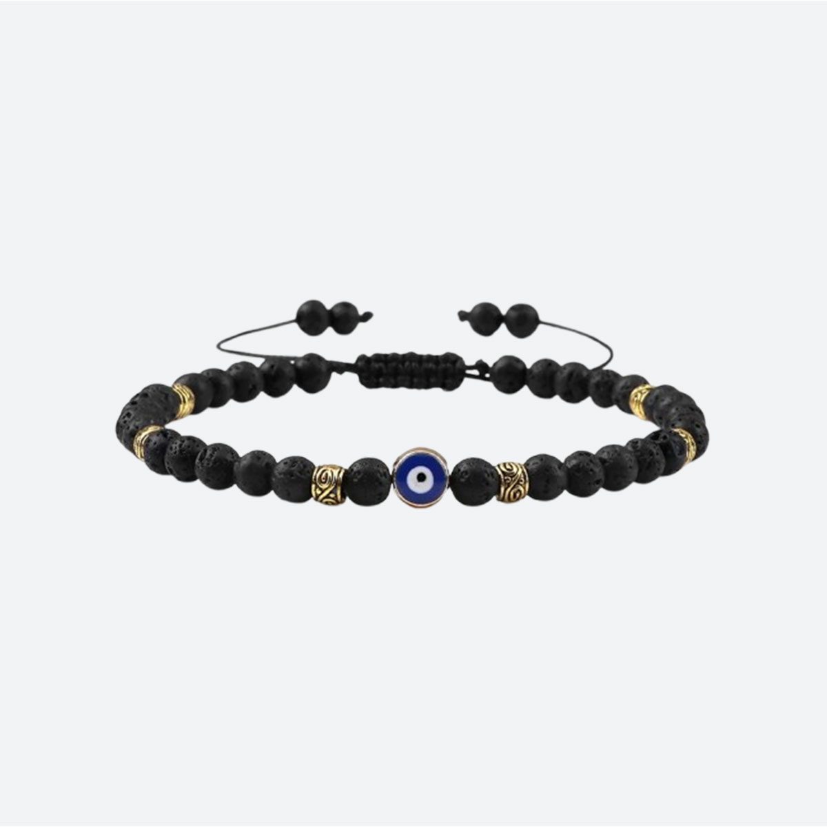 Portez un bouclier d’élégance à votre poignet avec ce bracelet, une création artisanale qui unit la force des minéraux à la symbolique protectrice du Nazar. Ce bijou se compose de perles en pierres naturelles de 8 mm (disponibles en pierre de lave, malachite, oeil de tigre et plus) encadrant un médaillon central de l’oeil protecteur de 10 mm, le tout rehaussé par des séparateurs orientaux aux finitions dorées ou argentées. Grâce à son système de cordon tressé ajustable, ce bracelet s’adapte à tous les poignets de 16 cm à 24 cm.