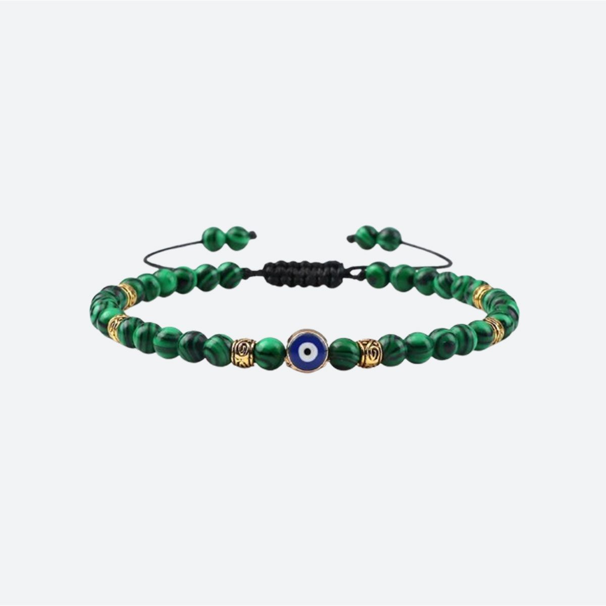 La variante du bracelet islam oeil ornée de perles vertes rappelant la malachite est un hommage à la couleur sacrée de l’Islam. Le vert symbolise le paradis, la croissance et l’abondance. Les perles présentent des marbrures allant du vert forêt au vert menthe, offrant une profondeur visuelle exceptionnelle qui attire le regard avec douceur. Associé à l’oeil protecteur, ce bracelet devient un symbole d’équilibre et de prospérité. C’est la pièce parfaite pour celles qui apprécient la sophistication des pierres colorées et souhaitent un accessoire qui respire la sérénité et la nature.