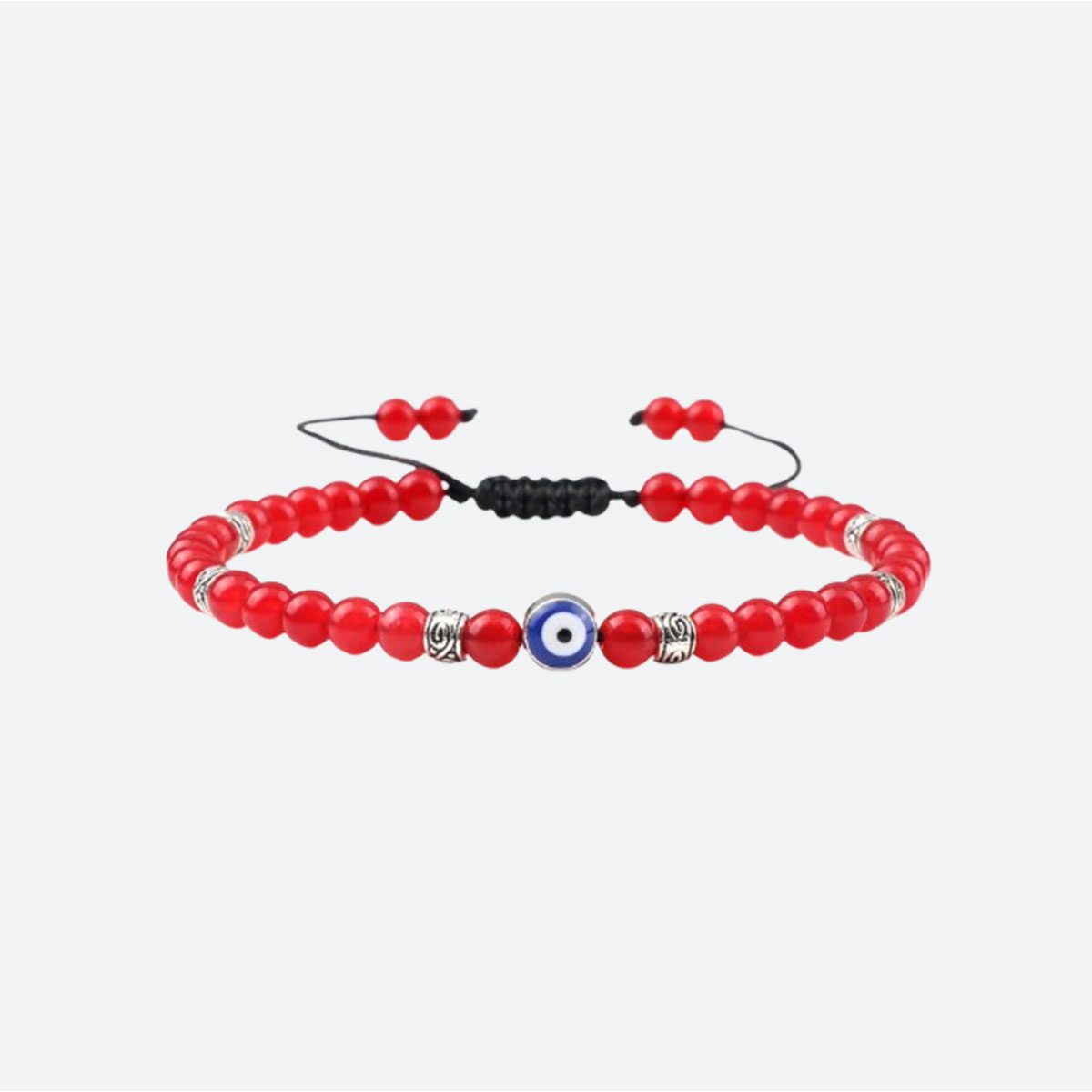 Le bracelet islam oeil aux perles rouges vibrantes s’adresse aux femmes passionnées et énergiques. Le rouge est la couleur de la vie et de la détermination. Sur ce modèle, les perles lisses et brillantes encadrent l’oeil central avec une intensité qui ne passe pas inaperçue. Associé aux séparateurs argentés, ce bracelet crée un look moderne et audacieux. Porter le rouge avec l’oeil protecteur est une manière forte de signifier que votre énergie est protégée et que vous avancez avec passion vers vos objectifs, à l’abri des mauvaises intentions.